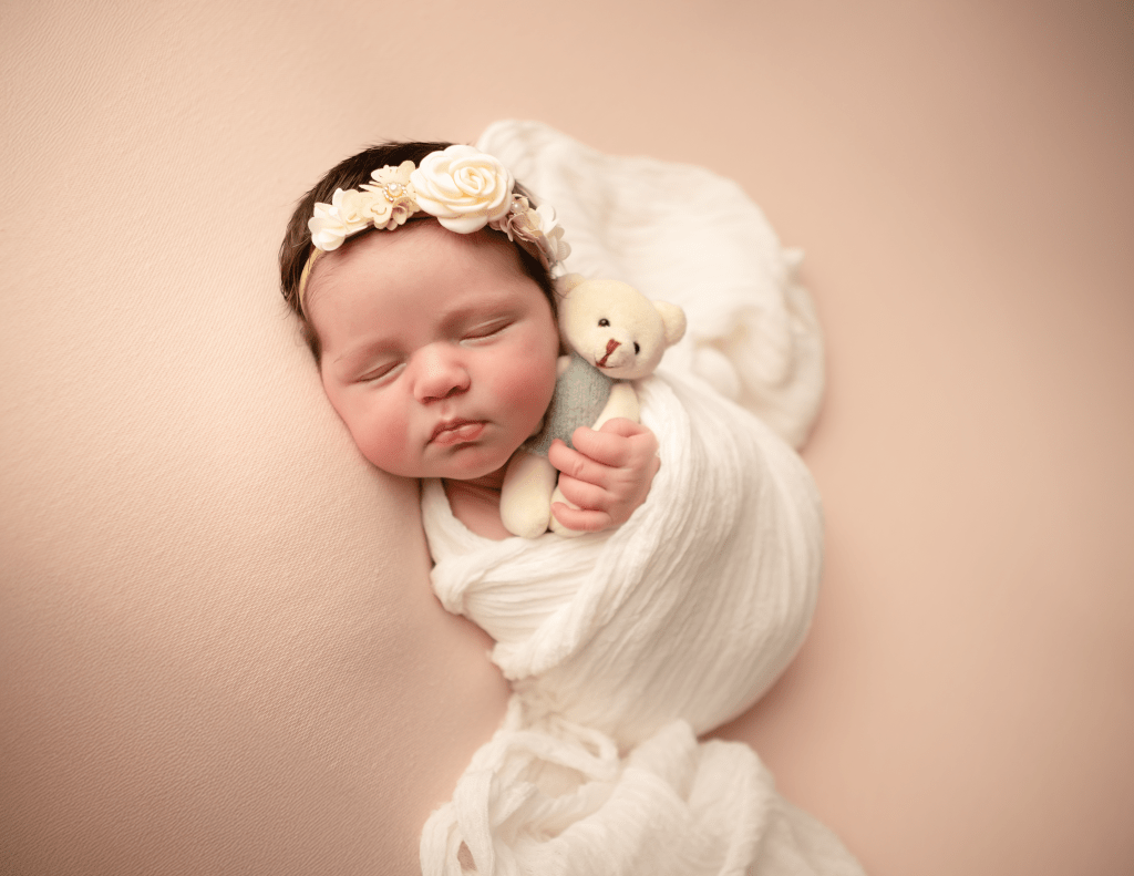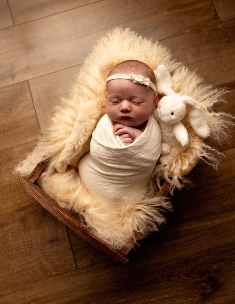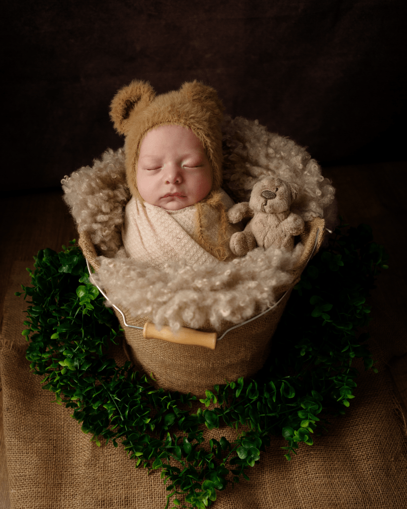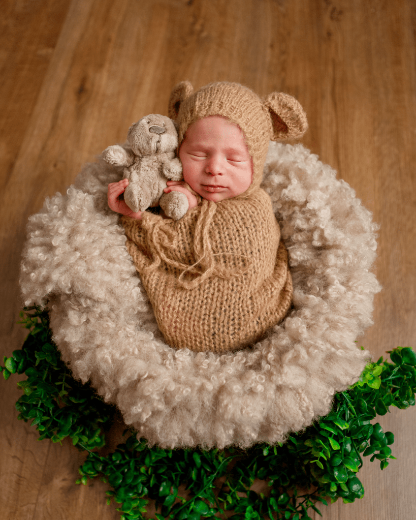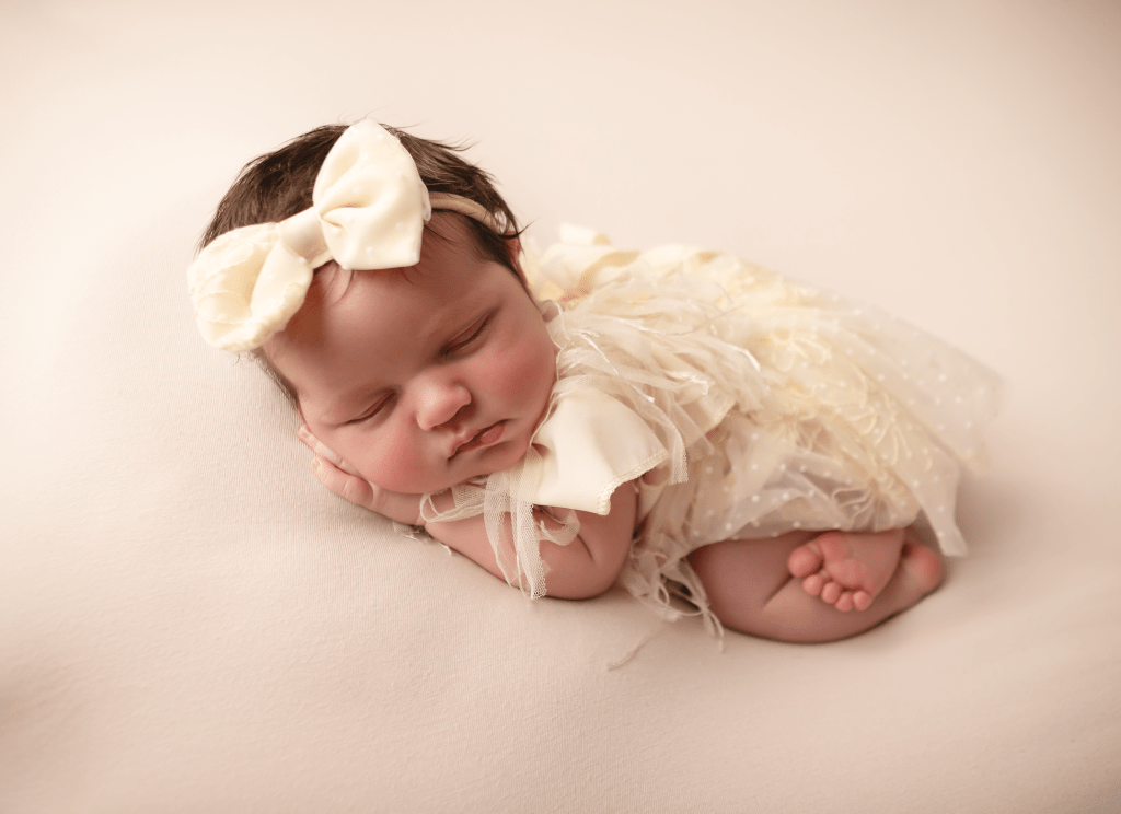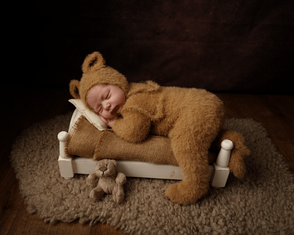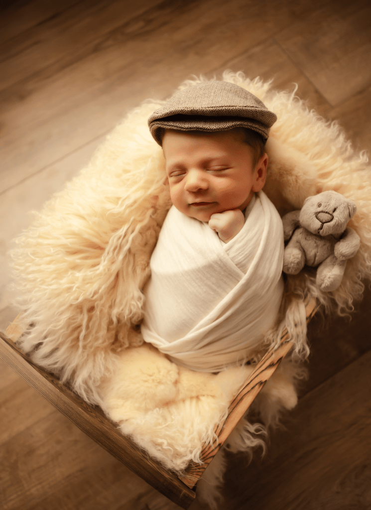 Newborn sessions can take up to 4 hours, as we go at baby’s pace. All you need to bring are spare nappies, extra milk (if you are bottle feeding) and a dummy (if you’re using one). All outfits, wraps and props are included but if there is something special that you would like included in the photos, just bring it along with you.