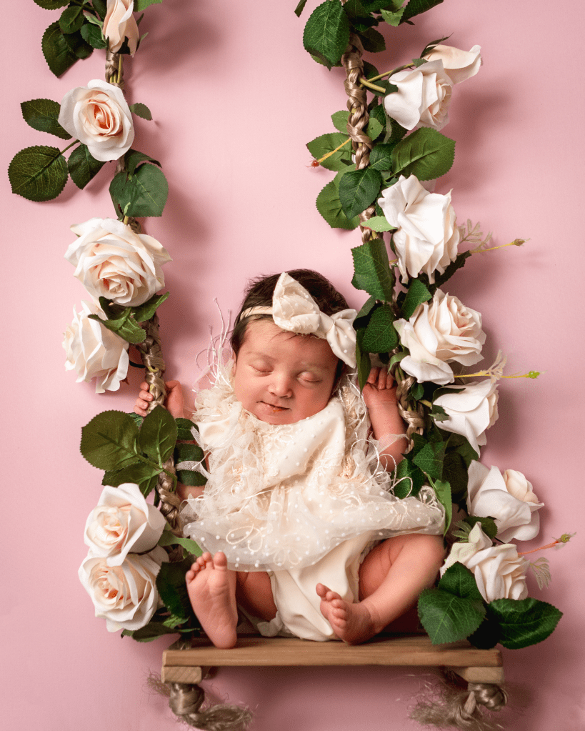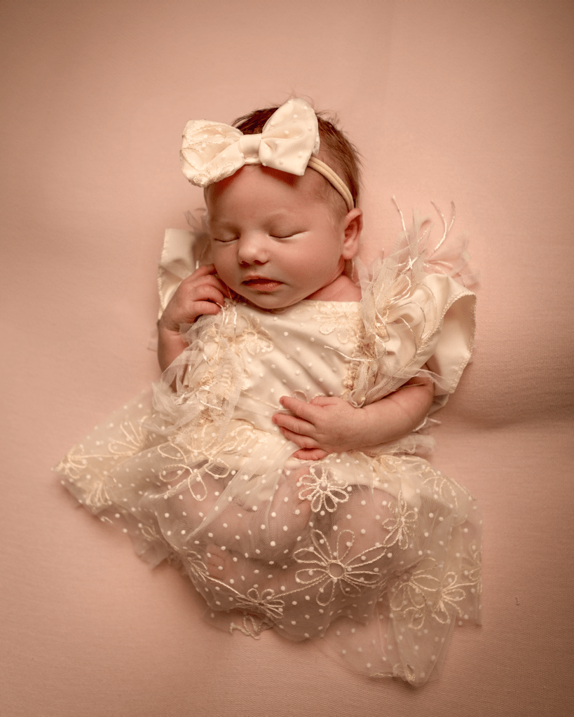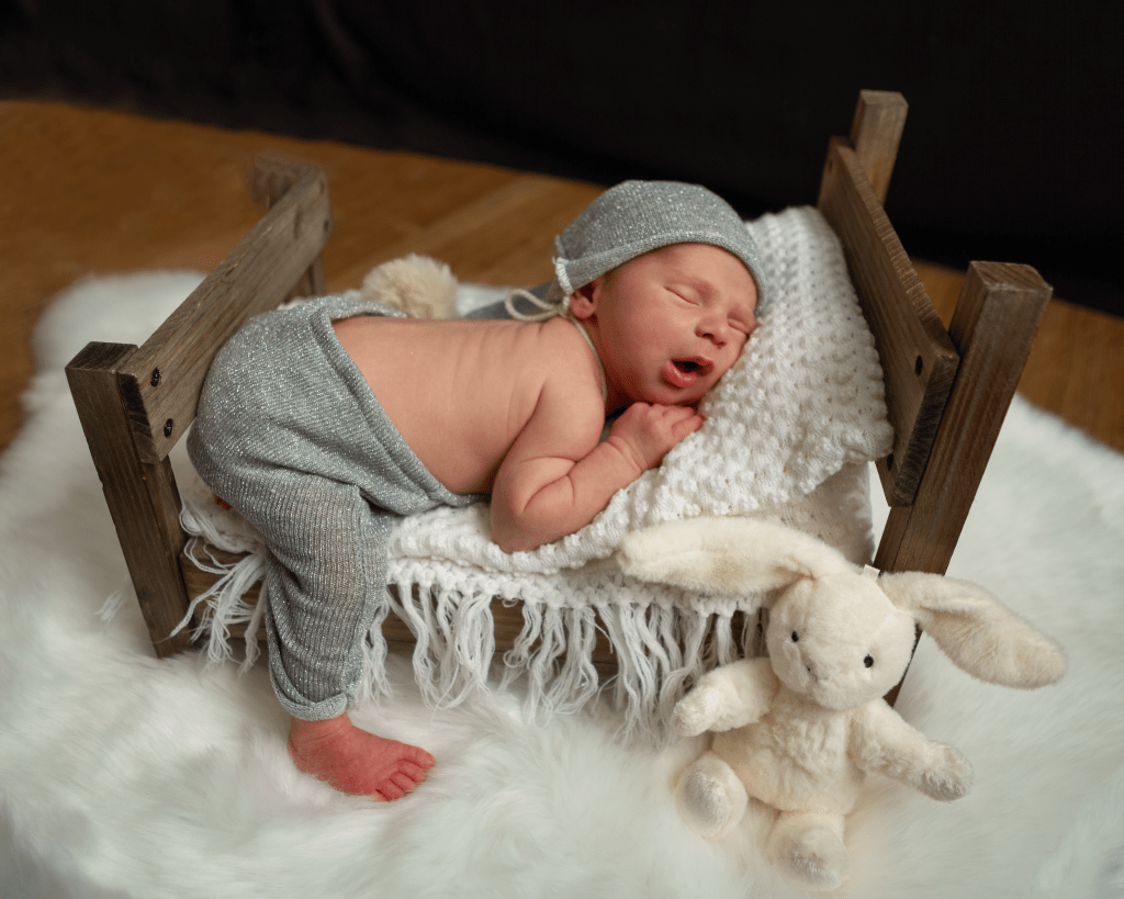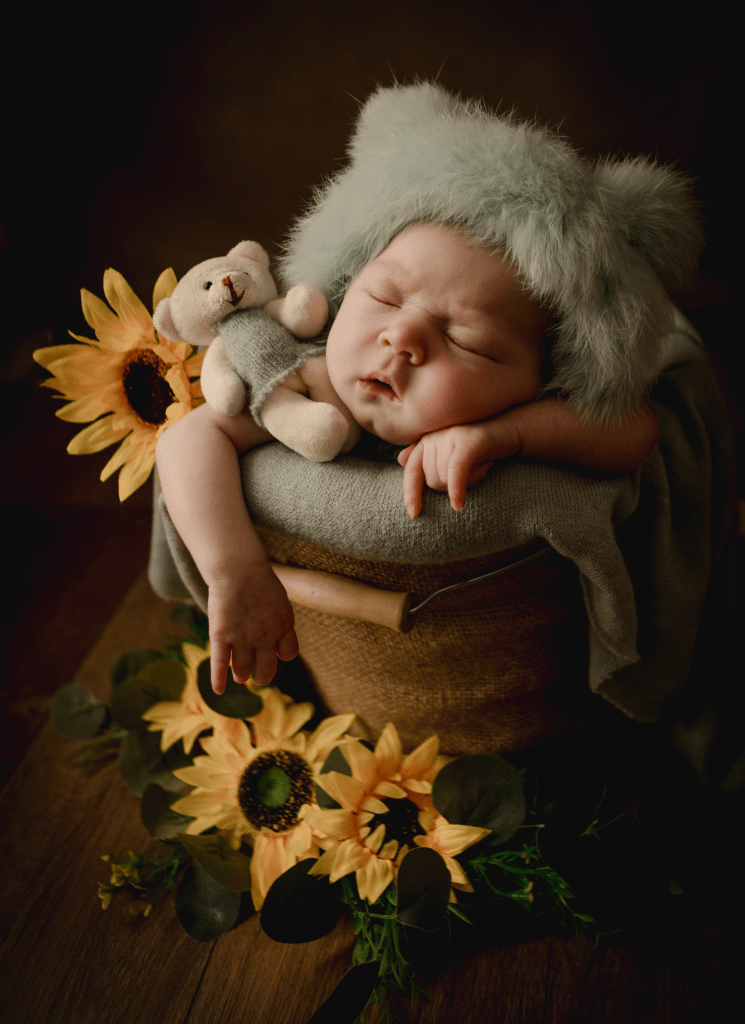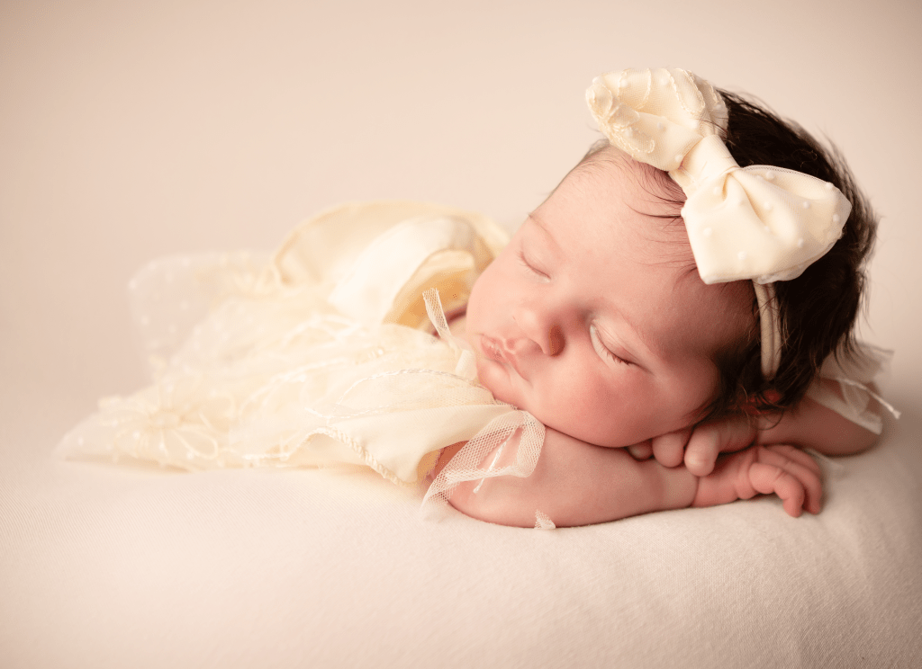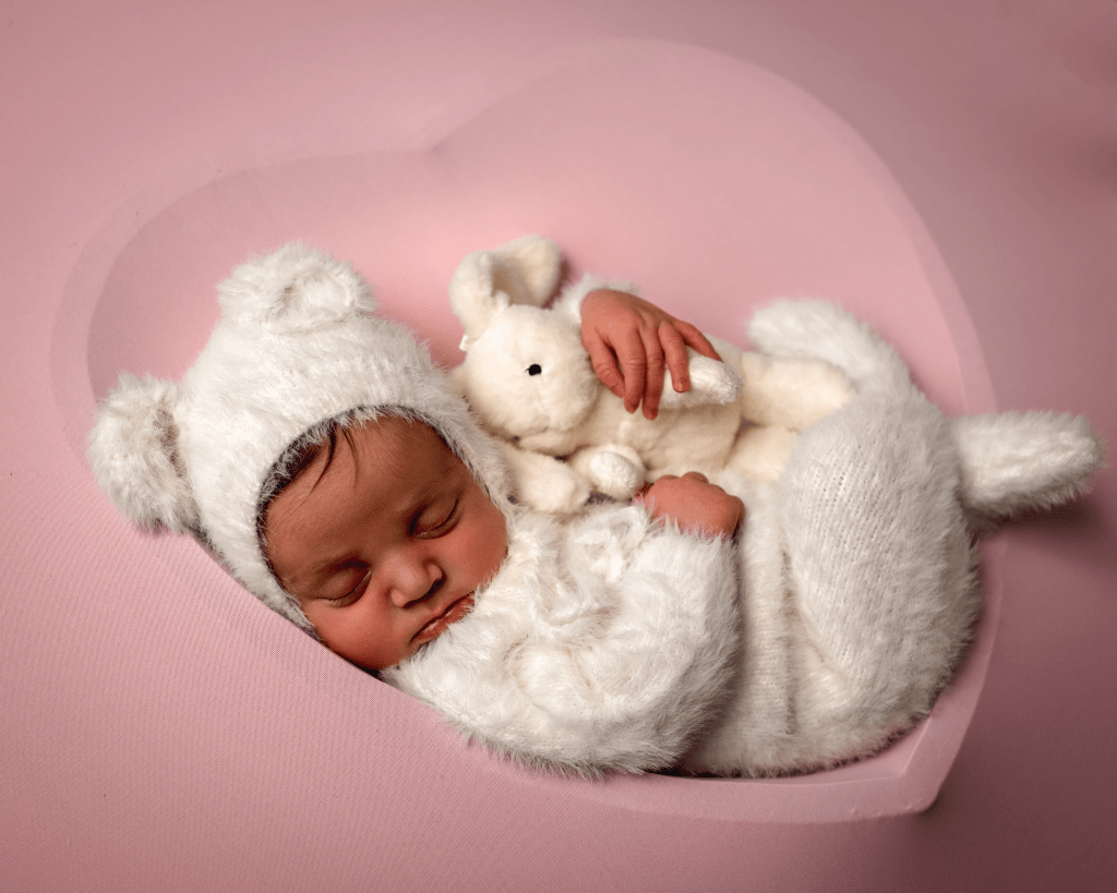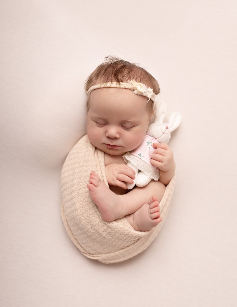 Newborn sessions can take up to 4 hours, as we go at baby’s pace. All you need to bring are spare nappies, extra milk (if you are bottle feeding) and a dummy (if you’re using one). All outfits, wraps and props are included but if there is something special that you would like included in the photos, just bring it along with you.